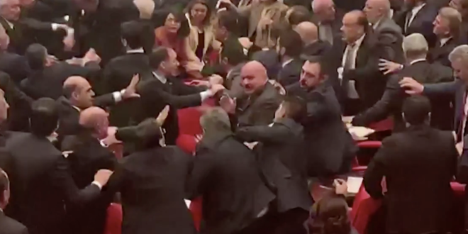 شجار بالأيدي سقط على أثره أكثر من نائب برلماني تحت قبة البرلمان التركي، بعد كلمة نائب حزب الشعب الجمهوري إنجين أوكوتش التي هاجم فيها سياسة الرئيس التركي رجب طيب إردوغان في إدلب.