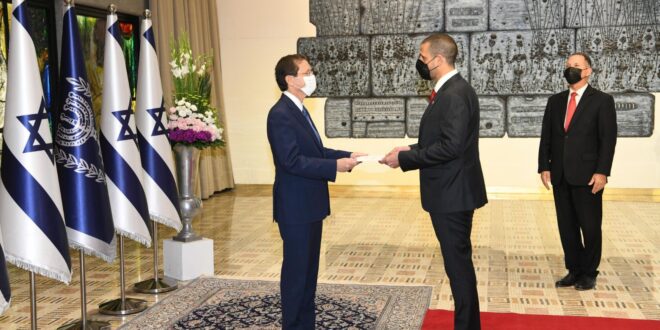 قدم خالد يوسف الجلاهمة، أول سفير لمملكة البحرين لدى إسرائيل، أوراق اعتماده إلى الرئيس إسحاق هرتسوغ يوم الثلاثاء في مقر إقامة رئيس الدولة في القدس