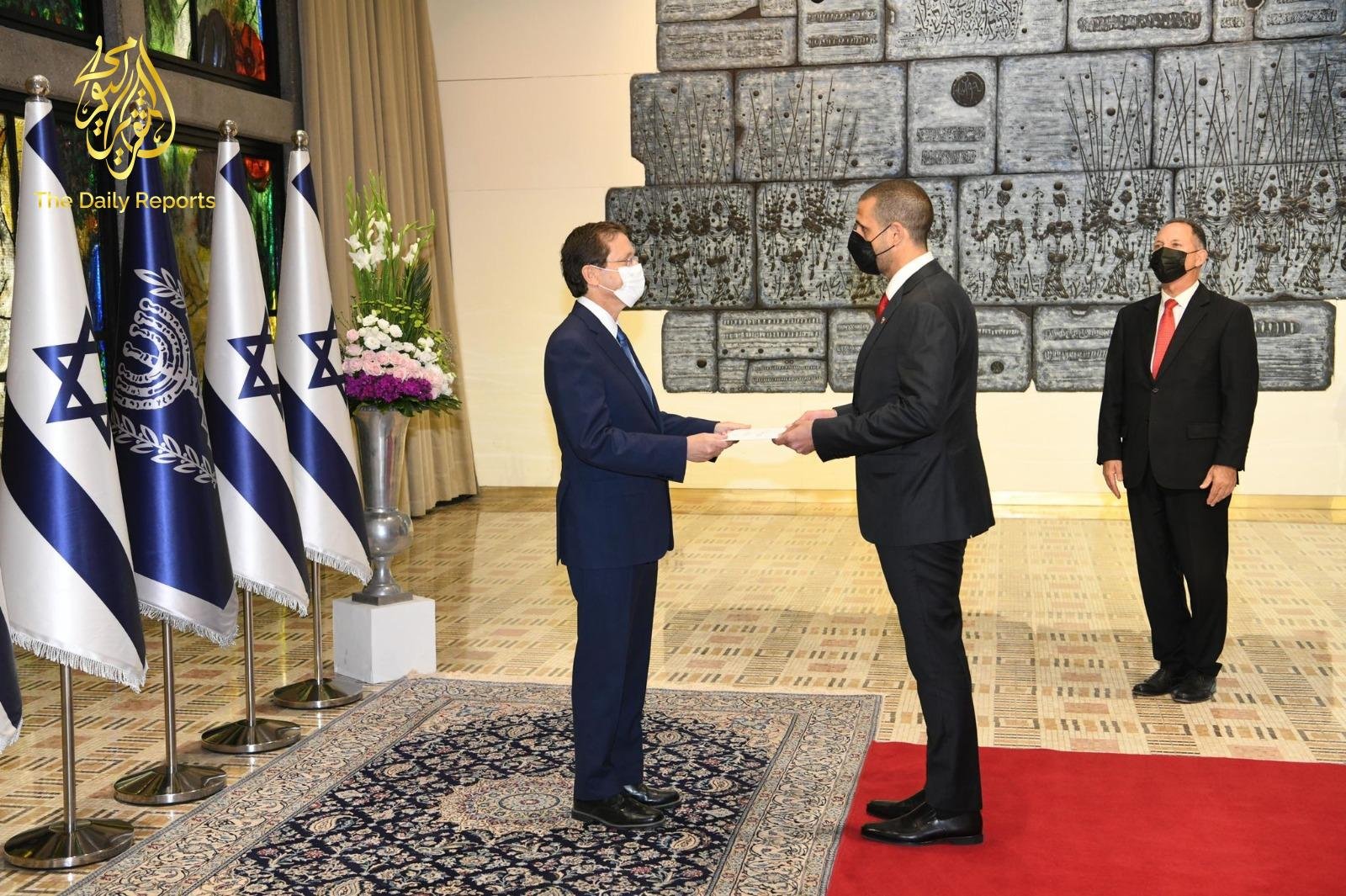 قدم خالد يوسف الجلاهمة، أول سفير لمملكة البحرين لدى إسرائيل، أوراق اعتماده إلى الرئيس إسحاق هرتسوغ يوم الثلاثاء في مقر إقامة رئيس الدولة في القدس