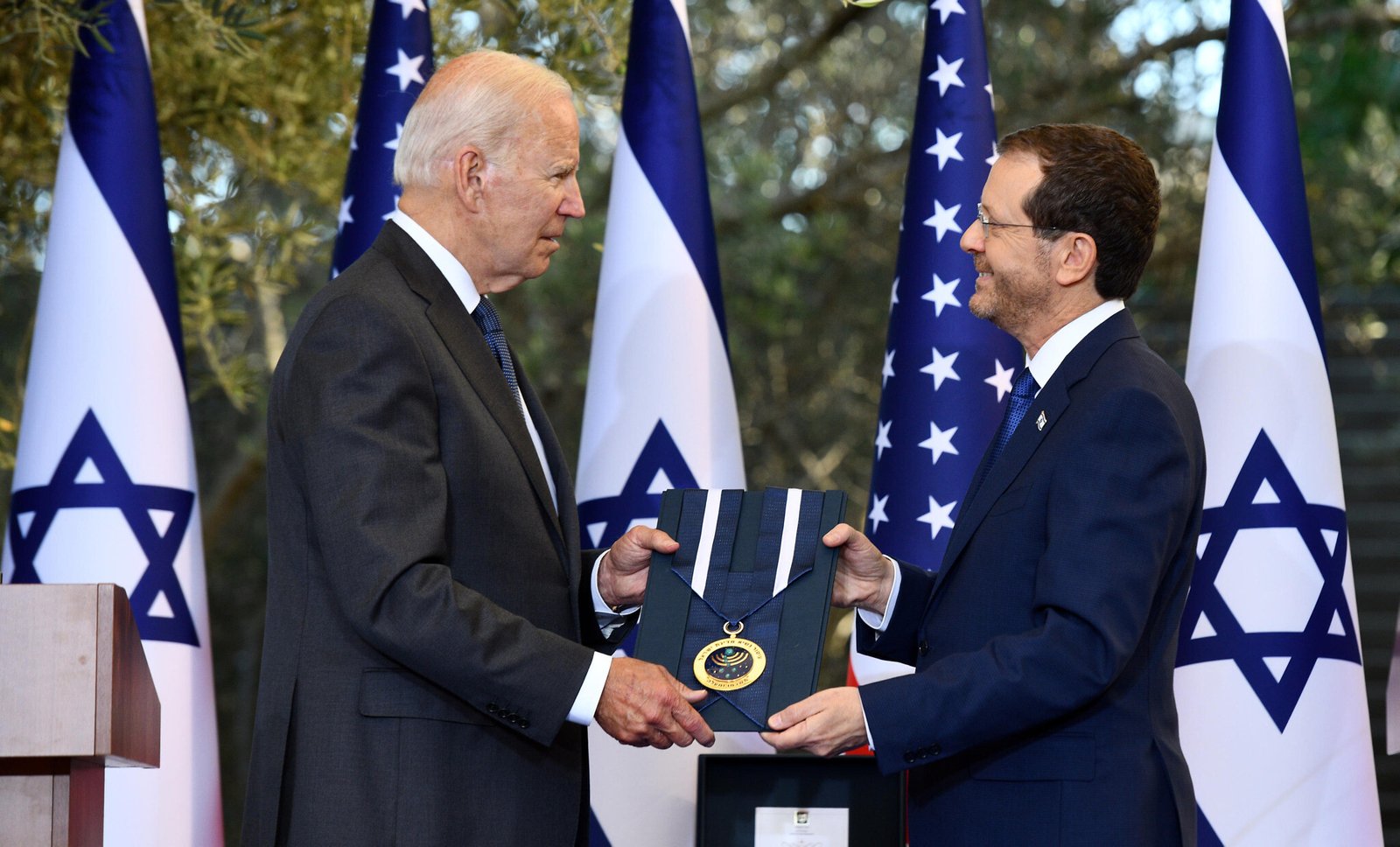 تسلم الرئيس الأمريكي جو بايدن وسام الشرف الرئاسي الإسرائيلي يوم الخميس من نظيره الإسرائيلي إسحاق هرتسوغ