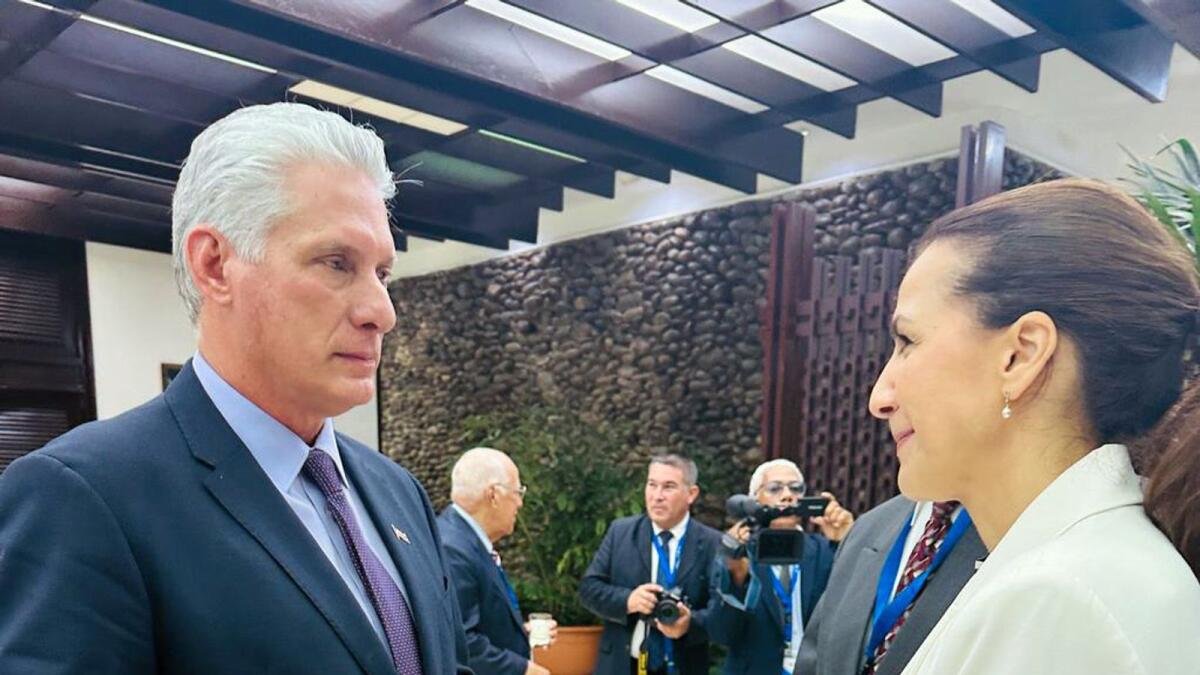وترأست الوزيرة وفد الدولة إلى قمة مجموعة الـ77+الصين التي عقدت في كوبا حيث التقت بالرئيس الكوبي ميغيل دياز كانيل بالإضافة إلى وزراء وكبار المسؤولين من مختلف أنحاء العالم. وحضر قمة مجموعة الـ 77 + الصين، تحت عنوان “تحديات التنمية الحالية: دور العلوم والتكنولوجيا والابتكار”، أنطونيو غوتيريس، الأمين العام للأمم المتحدة بالإضافة إلى العديد من رؤساء الدول