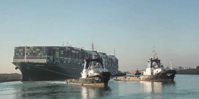 لقد كانت تعيق حركة المرور عبر الممر المائي الإستراتيجي ، والذي يسمح للسفن التي تسافر من آسيا إلى أوروبا بتجنب الدوران حول إفريقيا ، لمدة أسبوع تقريبًا بعد اصطدامها بالأرض والإنعطاف بشكل مائل
