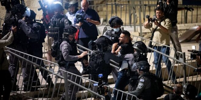 اندلعت اشتباكات جديدة بين الفلسطينيين والشرطة الإسرائيلية ليل السبت عند باب العامود عند مدخل البلدة القديمة في القدس ، بعد أسبوع من التوترات في العاصمة وفي الضفة الغربية