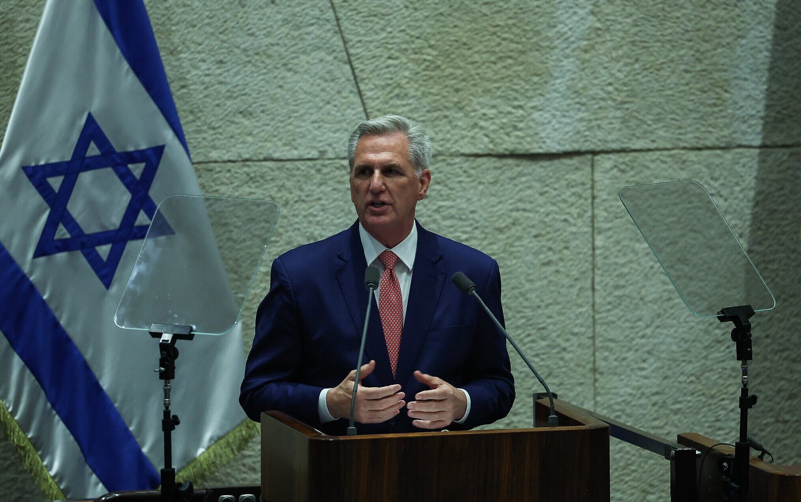في خطاب ألقاه في الكنيست الإسرائيلي بكامل هيئته، وصف رئيس مجلس النواب الأمريكي كيفين مكارثي كلمة إسرائيلية-أمريكية. وتعهدت واشنطن بمواصلة دعم أمن الدولة اليهودية في مواجهة العدوان الإيراني
