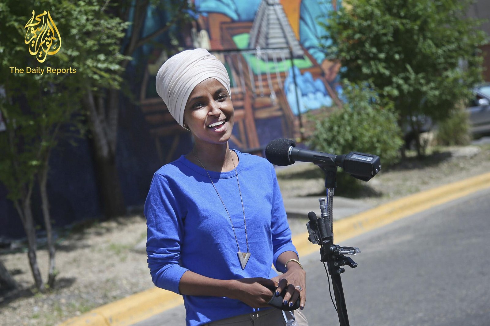 الإعلان المعني تم نشره على فيسبوك وتضمن صورة لعمر كتب عليها “لإلهان عمر لا فرق بين أمريكا وطالبان، بين إسرائيل وحماس، بين الديمقراطيات والإرهابيين، أخبر النائب عمر: إدانة” إرهابيين وليس أمريكا “، كانت الصورة نفسها مكتوبة بعبارة “قف مع أمريكا. قف ضد الإرهابيين”