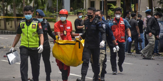 هز تفجير انتحاري كاتدرائية إندونيسية يوم الأحد حيث تناثرت أشلاء في المشهد الفوضوي بينما كان المسيحيون في الداخل يحتفلون ببداية أسبوع الآلام