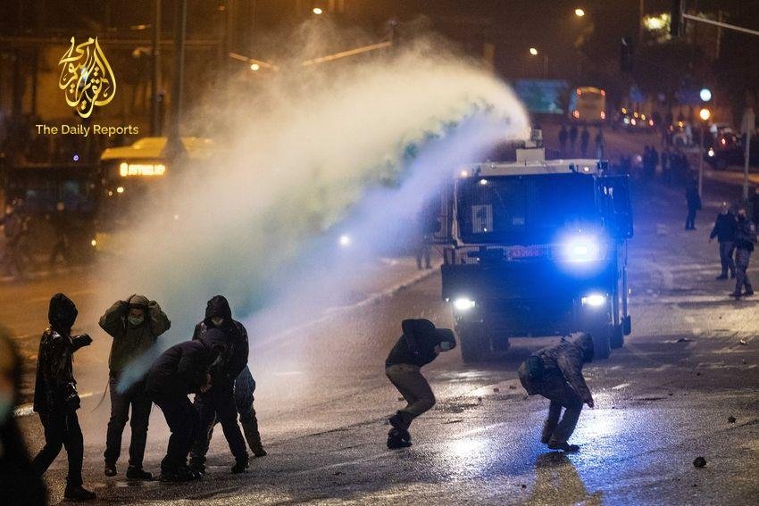 وألحق بيان للشرطة أضرارا بالبنية التحتية للطرق وممتلكات عامة في المنطقة وانقلبت سيارة للشرطة فيما تعرضت أخرى للتخريب