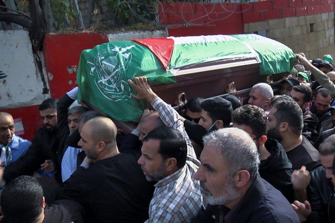 ووردت أنباء عن سقوط عدة ضحايا بعد اندلاع أعمال عنف في جنازة أحد أعضاء حماس في مخيم للاجئين الفلسطينيين يوم الأحد بعد أيام من وقوع انفجار