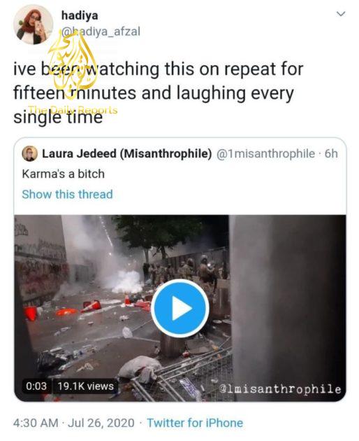 وكتبت أفضل في تغريدتها: “كنت أشاهد هذا مرارًا وتكرارًا لمدة خمسة عشر دقيقة وأضحك في كل مرة” ، ولم يكن واضحًا أي فيديو احتجاجات كان خريج جامعة ديبول يشاهده