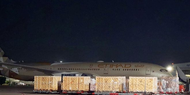 وكانت الإمدادات ، التي تم تسليمها على متن أول رحلة مباشرة من الإتحاد للطيران من الخليج إلى تل أبيب ، والتي هبطت في إسرائيل يوم الثلاثاء ، ثاني شحنة إنسانية إماراتية رفضتها رام الله في شهر