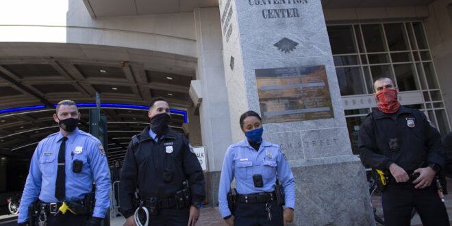 أفادت وسائل إعلام محلية أن الشرطة اعتقلت رجلين خارج مركز مؤتمرات بنسلفانيا في فيلادلفيا مساء الخميس بينما تحقق الشرطة في مؤامرة مزعومة لتفجير مركز فرز الأصوات