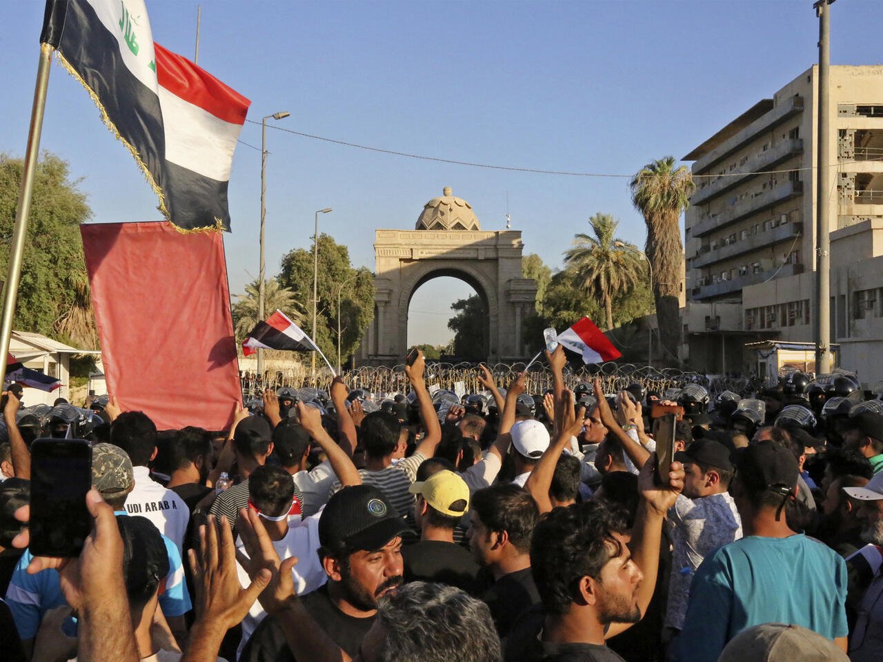 ودعا رئيس الوزراء العراقي مصطفى الكاظمي المتظاهرين إلى “الإنسحاب الفوري” من المنطقة الخضراء. وحذر في بيان من أن الأجهزة الأمنية ستعمل على “حماية مؤسسات الدولة والبعثات الخارجية ومنع أي مساس بالأمن والنظام”
