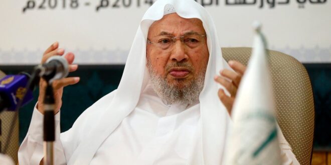 مؤسس الإتحاد الدولي لعلماء المسلمين ، القرضاوي ، رجل دين مصري المولد مقيم في الدوحة ، ممنوع من الدخول إلى عدة دول ، بما في ذلك فرنسا والمملكة المتحدة منذ عام 2012 ، بعد أن دعا إلى شن هجمات انتحارية ضد الإسرائيليين، كما يعتبر الزعيم الروحي لجماعة الإخوان المسلمين المحظورة