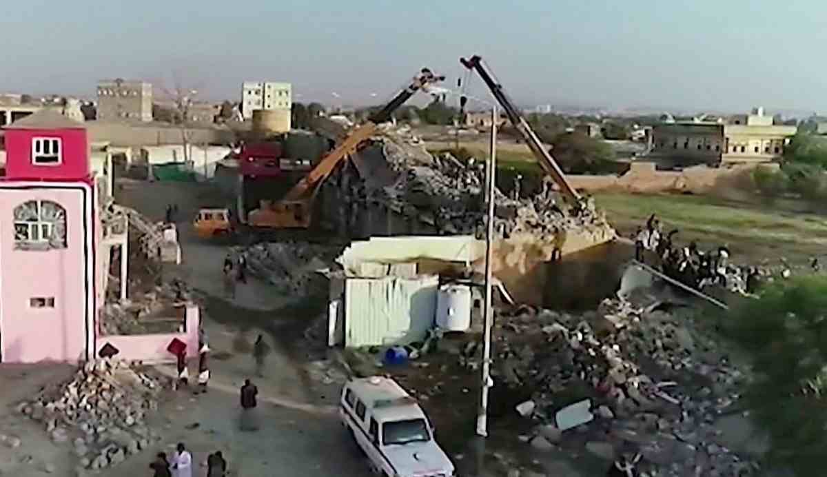 وأظهرت لقطات فيديو مروعة نشرها المتمردون المدعومون من إيران مبان تعرضت للقصف مع عمال الإنقاذ وهم يرفعون الجثث من بين الأنقاض والجثث الممزقة التي تركت في أكوام قريبة
