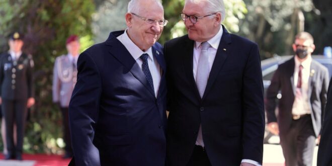 قال الرئيس الإسرائيلي رؤوفين ريفلين إن ألمانيا كانت “شريكًا قويًا” في مكافحة معاداة السامية صباح الخميس في خطابات مشتركة مع نظيره الألماني فرانك فالتر شتاينماير في مقر إقامة الرئيس في القدس