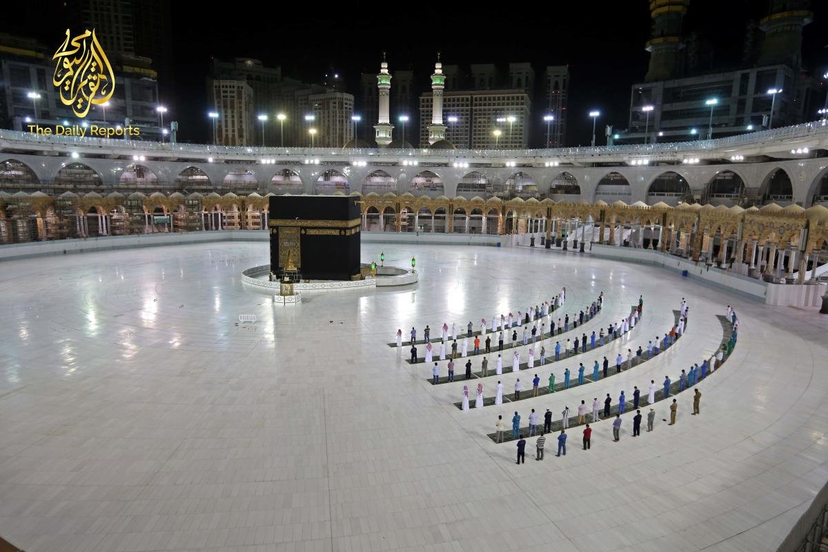 أظهر التلفزيون الرسمي أن الحجاج دخلوا المسجد الحرام في مكة على دفعات لبدء الطقوس بأول طواف لهم أو يتجولون حول الكعبة ، وهي عبارة عن هيكل على شكل مكعب ملفوف بقطعة مطرزة بالذهب ويصلي المسلمون حول العالم تجاهها