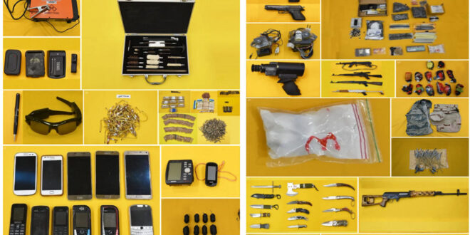 ومن بين المواد التي تم ضبطها أنظمة بدء للأجهزة المتفجرة المرتجلة التي يتم التحكم فيها لاسلكيًا وأجهزة التفجير الكهربائية والشحنات الرئيسية في اسطوانات بيضاء، تم تجهيز المستقبلات المتطورة بمكونات ثنائية اللون متعددة التردد ، جنبًا إلى جنب مع مستشعرات الأشعة تحت الحمراء السلبية تتكون الموصلات من مقابس ثنائية السنون ، وكانت المقابس مرئية أيضًا