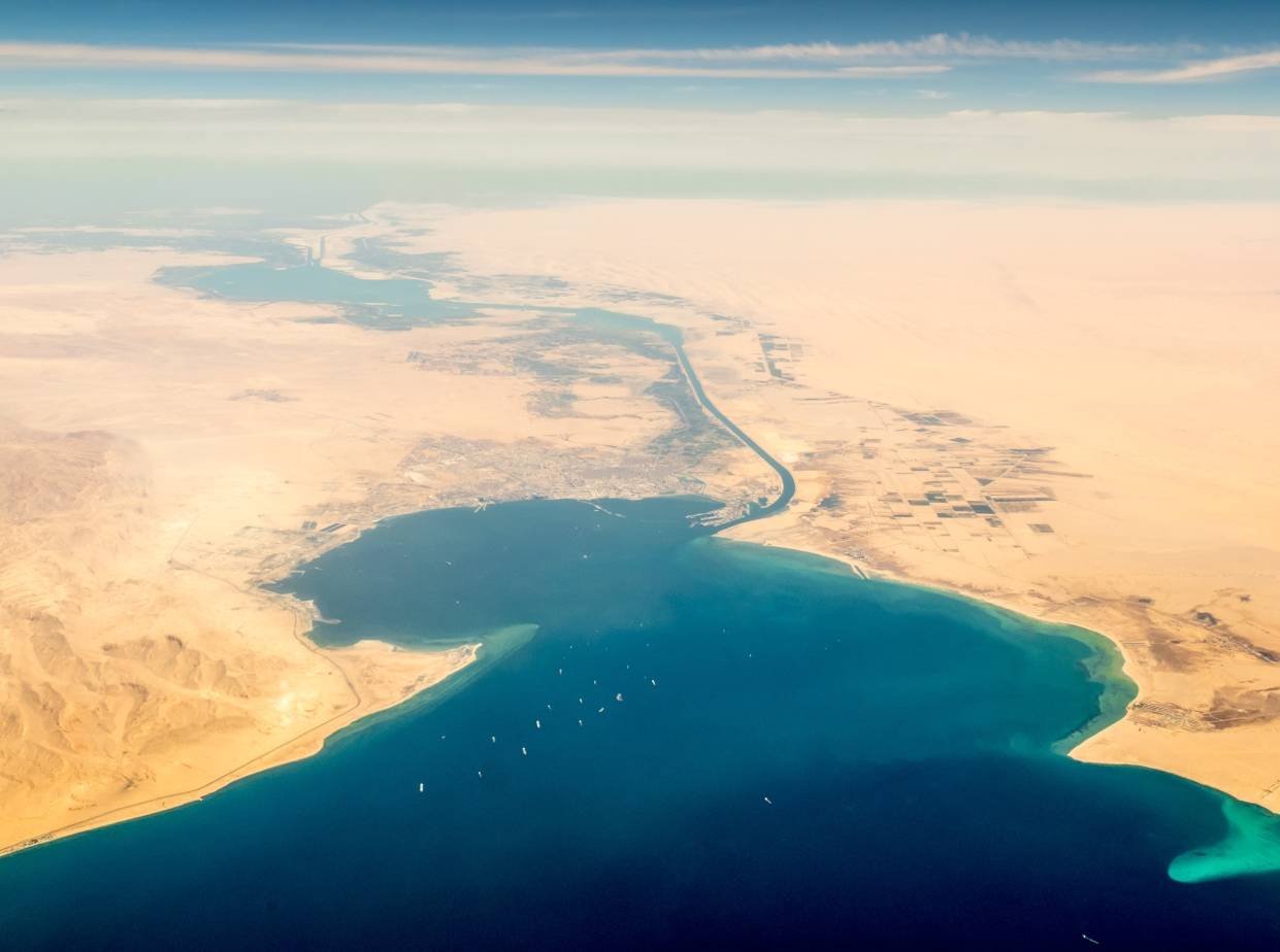 تمر قوافل السفن بانتظام عبر ممر المياه على مستوى سطح البحر في مصر الذي يربط البحر الأبيض المتوسط والبحر الأحمر