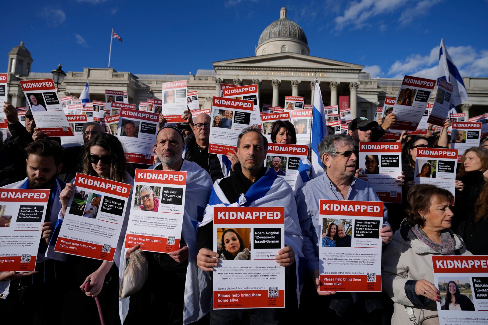 حضر أكثر من 3000 شخص إلى ساحة البرلمان في لندن للمشاركة في مسيرة يوم الأحد نظمتها حركة “اختطاف من أجل إسرائيل” الشعبية لإعادة أكثر من 240 رهينة معروفين إلى وطنهم