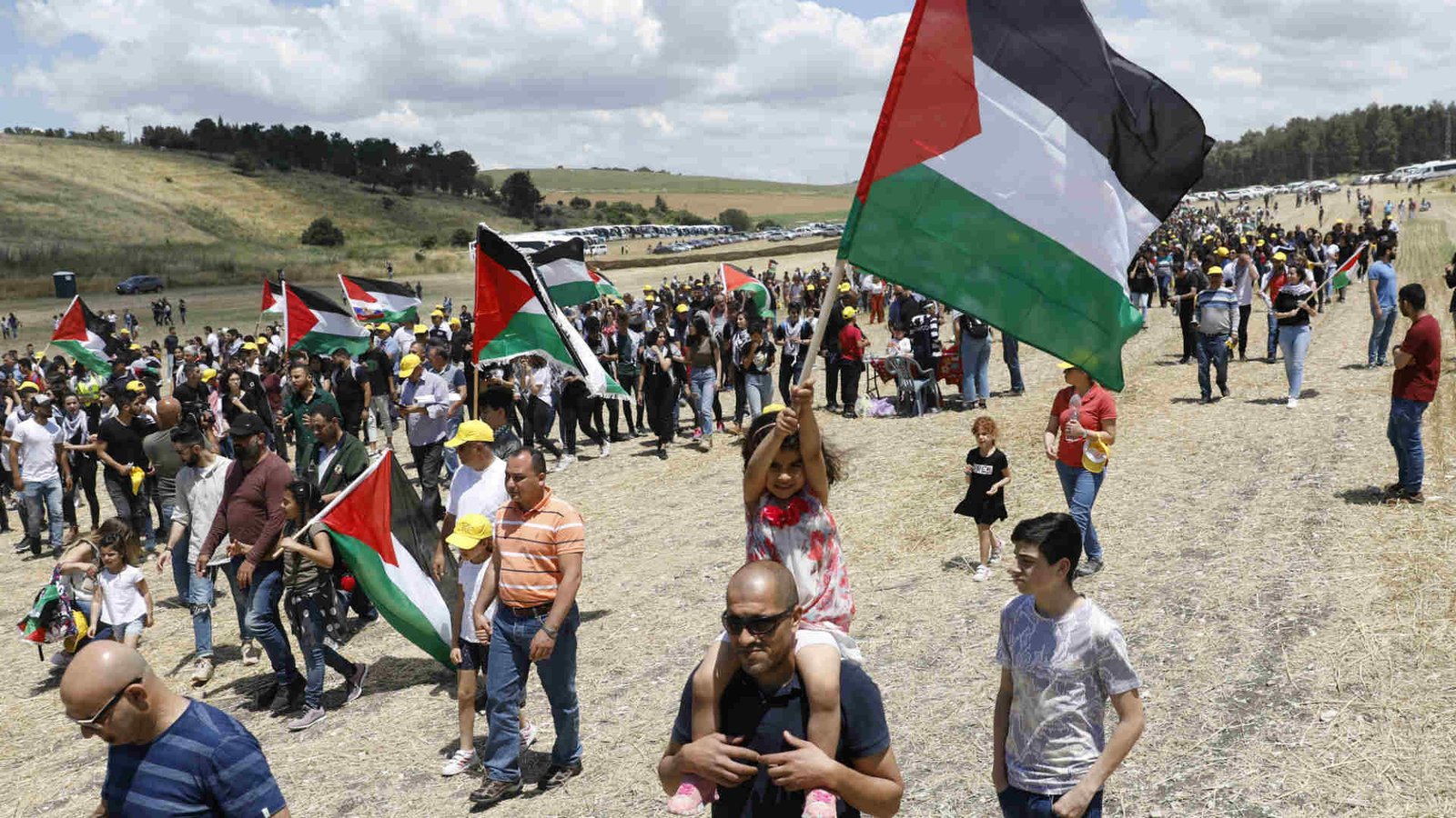 وذكرت صحيفة “هآرتس” أن المشاركين في المسيرة حملوا الأعلام الفلسطينية ولافتات عليها أسماء القرى العربية التي اقتلعت من جذورها في إطار مساعي إسرائيل للإستقلال، والتي وصفها الفلسطينيون بـ “الكارثة”
