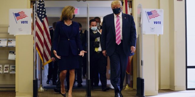 صوّت ترامب ، الذي يتأخر عن المرشح الديمقراطي جو بايدن في استطلاعات الرأي ، في مكتبة تعمل كمركز اقتراع في ويست بالم بيتش بولاية فلوريدا