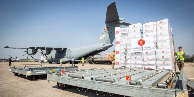 حاولت تركيا إبطاء شحن 36 طنا من المواد الطبية إلى قبرص من الصين، وقال يانيس كاروسوس ، وزير النقل والإتصالات والأعمال القبرصي ، إن الرحلة لم تسير بسلاسة لأن السلطات التركية لم تسمح للطائرة بالتحليق عبر المجال الجوي التركي