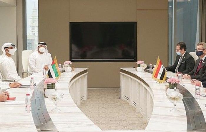 أجرت سوريا والإمارات محادثات على هامش معرض دبي إكسبو 2020 لإعادة العلاقات الإقتصادية بعد قطع العلاقات عقب اندلاع الحرب الأهلية السورية