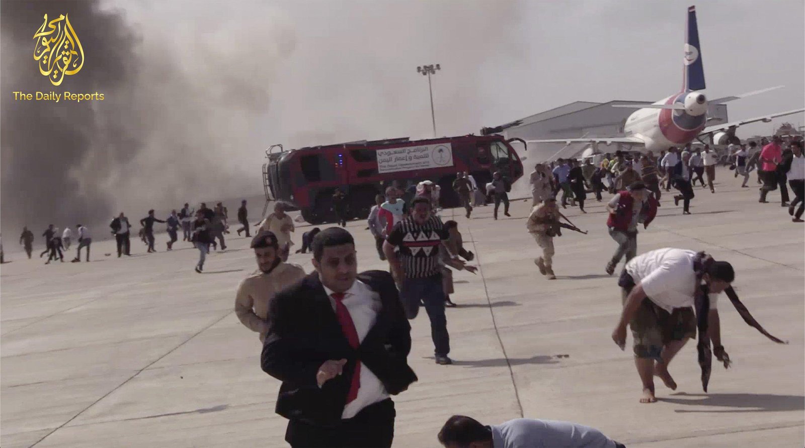 لقى ما لا يقل عن 28 شخصا مصرعهم وأصيب أكثر من 100 عندما هزت انفجارات المطار يوم 30 ديسمبر مع وصول الحكومة اليمنية المشكلة حديثا من المملكة العربية السعودية المجاورة