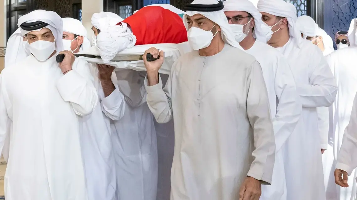 Avant son enterrement, le prince héritier d’Abou Dhabi, le Cheikh Mohammed ben Zayed Al Nahyan, et des membres de la famille Al Nahyan ont effectué des prières funéraires à la mosquée Cheikh Sultan Ben Zayed Premier à Abou Dhabi.